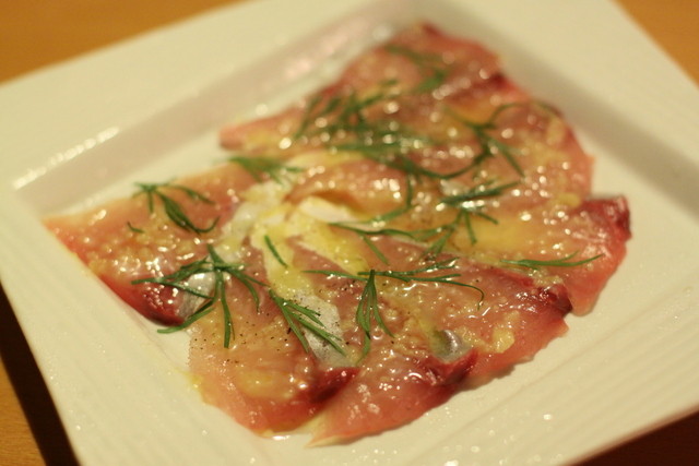 歯ごたえのある肉厚のひらまさに、オイルベースの味付けがベストマッチ。