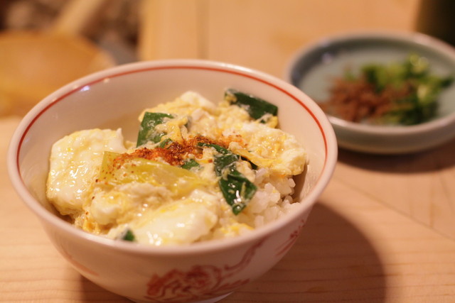 最後は、鍋の残り汁に溶き卵とネギを投入し、これをご飯にかけて頂きました。