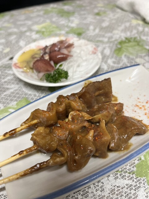 牛肉とか玉ねぎとか串に刺さってるんかと思いきや、ソーセージ、シシトウ、ベーコン(笑)卓上にあるソースを掛けていただくと、確かにバーベキュー(笑)
