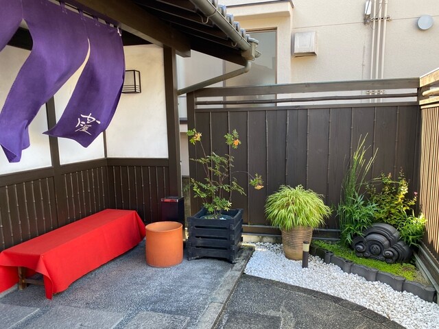 店舗奥2人用テーブル席から中庭を眺める