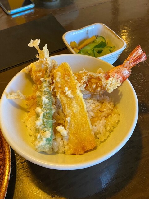 セットのミニ天丼と漬物