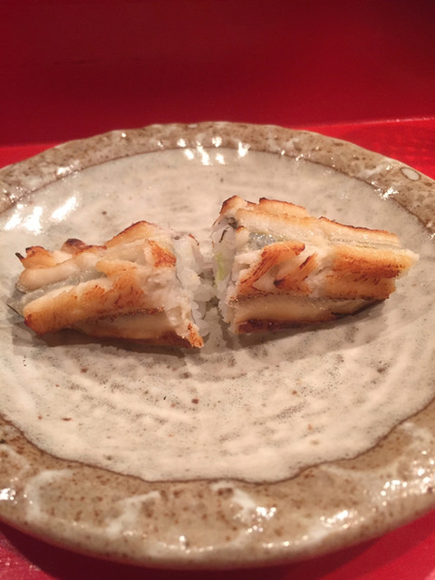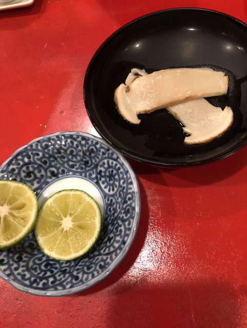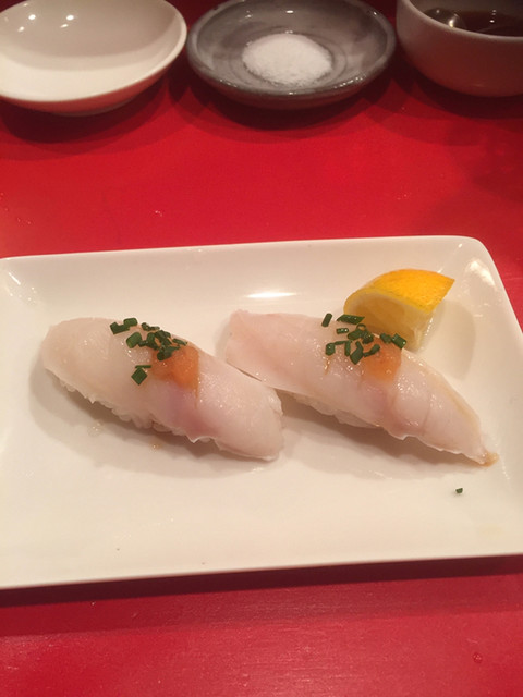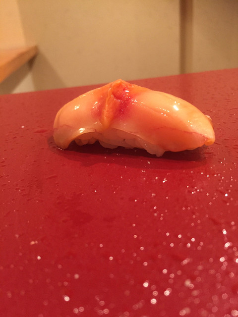 この日は、立派なシャコ(雄と雌)と赤芽のじゅんさい、平貝の自家製マヨネーズ、いつもの河豚身鉄皮をつまみに美味しいお寿司をいただきました♪(´ε` )