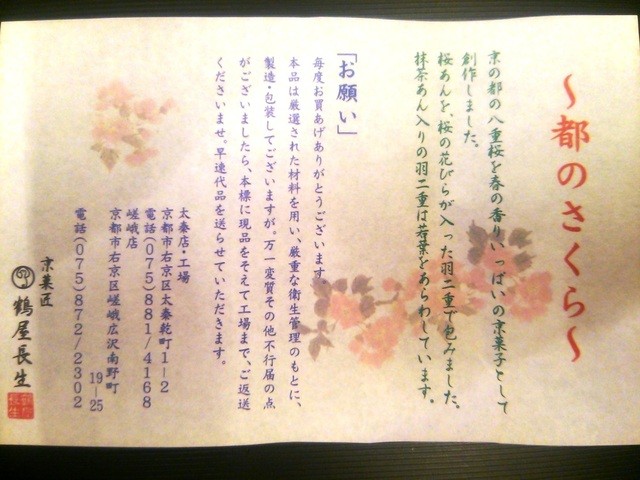 持ち帰った「都のさくら」は、桜花入りお餅に桜あん・抹茶のお餅に抹茶あんの2種類が入っている。