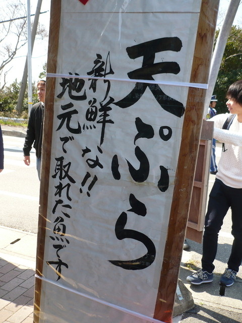 目を向けると、淡路島の海の幸・山の幸を揚げた天ぷらを買い求める長い列が伸びていた。