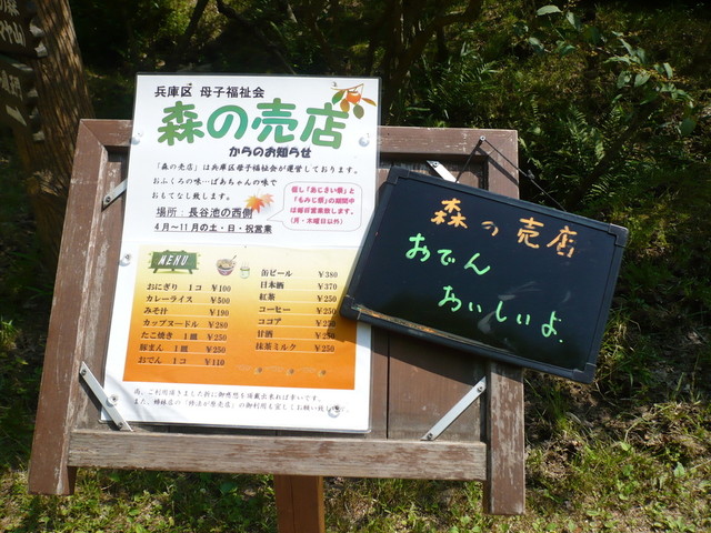 神戸市の友好都市に因んだモニュメントや香りの森、ニホンカモシカなどを眺めたあと、池の畔にある「森の売店」で一休み。