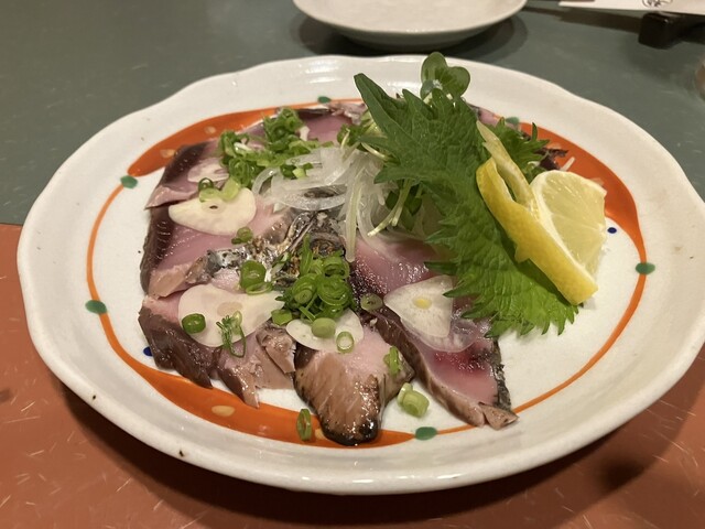 四国料理の「かつおのたたき・塩」も注文してみました。これも、新鮮なため、臭みがなく、妻もおいしいと、一皿をペロリ。