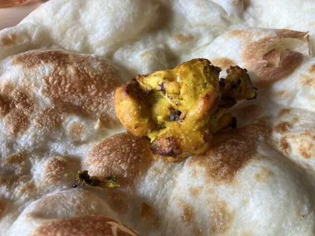 更に驚いたのが、「ナン」が焼きたてて熱々。ちぎった瞬間、暑くて危なく落としそうになりました!写真にあるように、こちらも大きいです。