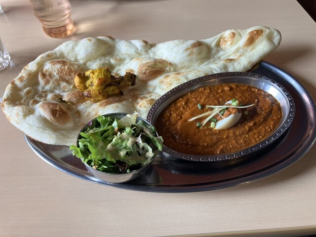カレーがだいぶ残っているので、お代わりの「ナン」を注文。お代わり価格は、120円です。出てきた「ナン」は、ランチについている「普通」のなんで、また大きく、しかも焼きたてで熱々。妻と二人で、あまりの気前良さにびっくり。リピート決定です。次回は、子供の好きな「エビカレー」を加えて、家族3人で訪れます。駅からは遠く、そこだけが残念ですが、車であれば、隣接する「リサイクルショップ」の大きな駐車場が使えますので、複数の家族でも大丈夫です。まだまだ、近くに未開拓のおいしい店があることを痛感しました。また、伺います。ご馳走さまでした。