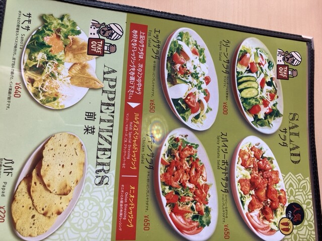 サラダも、スパイスの効いたソースがおいしいです。