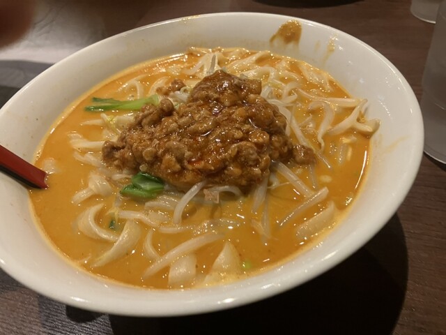 注文から、10分未満で着丼。湯気が立つ「担々麺」から、ほのかにスパイシーな香りが食欲をそそります。スープを口にすすると山椒の辛味と胡麻の甘味が口にひろがります。麺は「刀削麺」と普通の麺が選べ、私と妻は「刀削麺」を選択。その太麺が、担々麺のスープと絡みます。麺の上に添えられている挽肉を麺に投入。挽肉の旨みが更に広がりまた、スープにアクセントを加えます。麺も、程よい湯でかげんで、麺の腰を残しながら、歯応えも十分です。