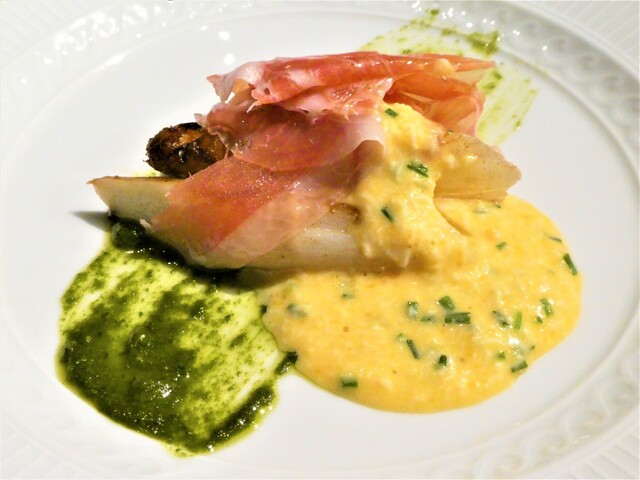 イタリア ヴェネト産ホワイトアスパラガスとハモン・デ・テルエル ボルツァーノソース