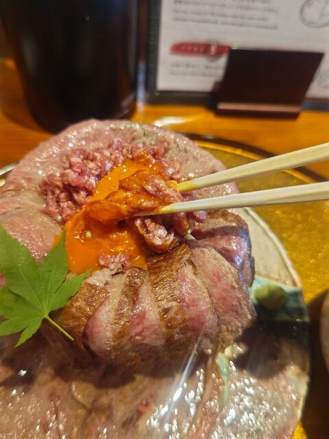 和牛ユッケと黒毛和牛ステーキをチョイス。