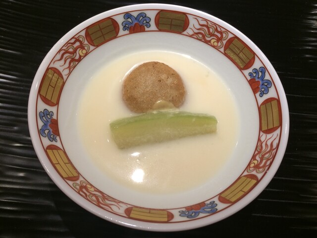 お初めは、ふぐの白子のお椀です。