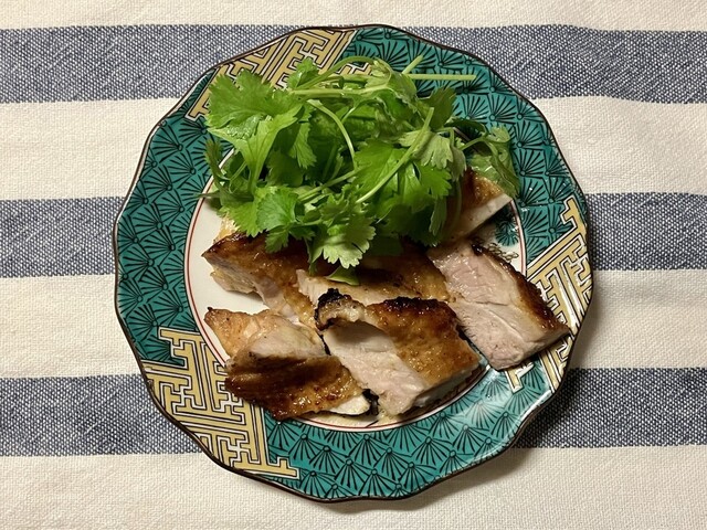 岐阜県産 奥美濃古地鶏もも肉のトムヤムグリル。パクチーを添えて。