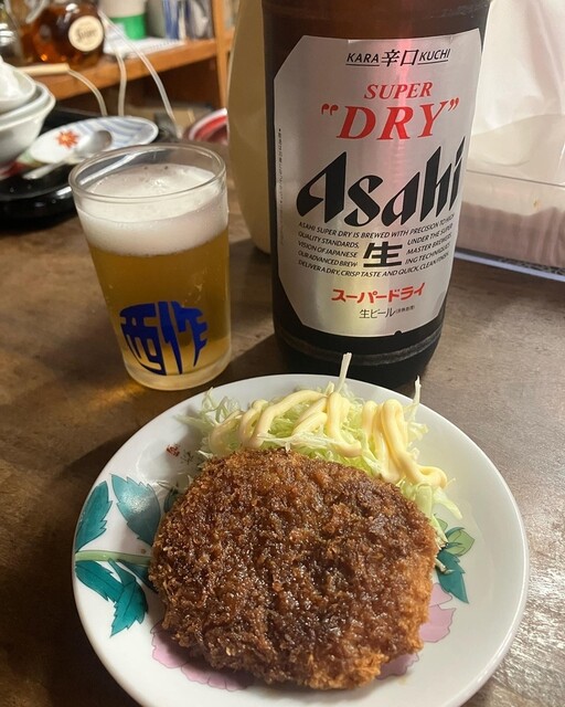 瓶ビール大とメンチカツ