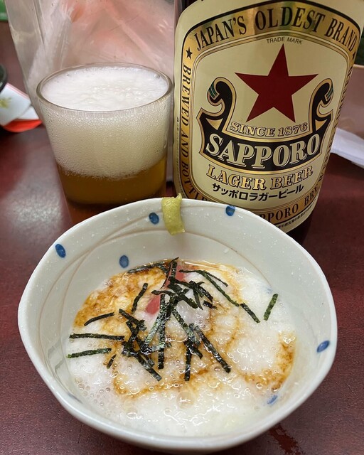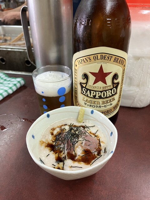 赤星大瓶とまぐろ山かけ