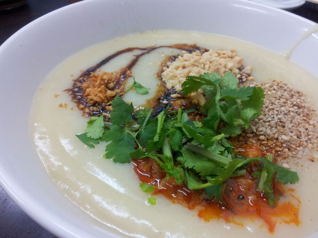 このスープが実においしい!黄色くドロッとした、日本でもなかなかお目にかかれない見た目はちょっと抵抗があるかもしれません。が、口にしてみると上品な甘さが感じられ、豆の青臭さなどは全くなし。舌触りはとても滑らか。100%シャン豆腐で作ったスープなのでとってもヘルシー。