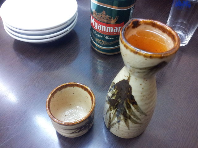まずは乾杯を。せっかくなのでシャン族のお酒をいただきました。