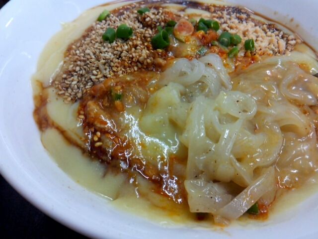 麺は米麺。米麺というとベトナムのフォーが有名ですが、こちらの麺はフォーと違いプルッとした食感。色は半透明。トロリとしたスープによく絡みます。