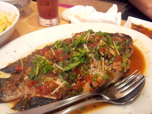 ティラピアを一匹姿揚げに!カリカリの表面にほっくり淡白な白身と酸っぱ辛いソースの組み合わせは抜群。