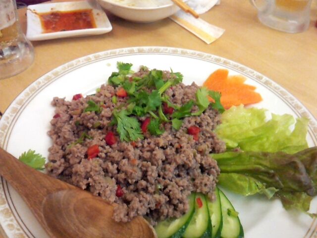 これもカチン族の料理?スパイシーな肉団子。中東のファラフェルのような風味でした。