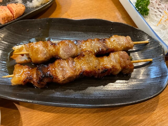黒板やホワイトボードにちょっとわかりにくい字で本日のメニューが書いてあります。この日は他にかつお刺しやサンマ刺しなんかもおいしかった。かつおは700円だったかな。定番の焼たらこ450円や柳川(どじょう鍋)、豚バラ串などいただきました。
