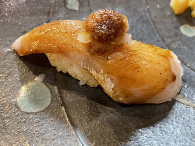 よく唐揚げにされる目光を蒲焼にして、めちゃ美味しい海苔といっしょにいただきました。鮨のコースに目光が出てくるのは茨城ならではでしょう。