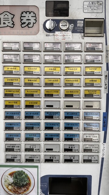 店舗外の券売機でチケットを購入。(新札、新500円硬貨には対応しておらず、店員さんに声掛けすると両替して貰えます。)かき揚げそば500円に海老天100円をトッピング。3分程で出来上がり呼ばれました。麺は細目ですが蕎麦の実の皮も練り込んであるタイプでざらっとしており自分好みの麺です。出汁は色が濃いめですがそこまで濃いわけでもなくちょっと濃い目かなと思われるレベルで麺と天ぷらとのバランスが良いですね