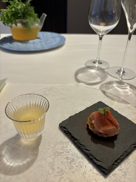 お願いしてあったのは、ワインペアリング付きお任せコース(食事16500ペアリング8800)