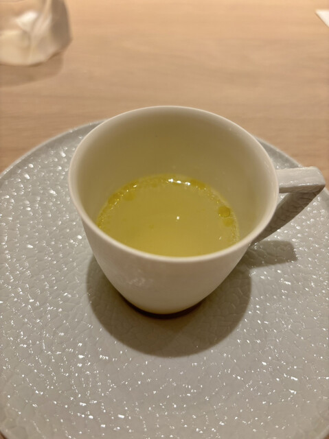 この辺りから美味しいパンが提供され始めます。それに合わせたバターの見た目も美しい。パンは、グリュイエルチーズの入ったシフォンサレ、アジョワンのマドレーヌ、レモンコンフィチュールを巻き上げたパンの3種です。見た目も味もガラッと変化させて、それでいて料理とワインに寄り添っています。流石ですね!!