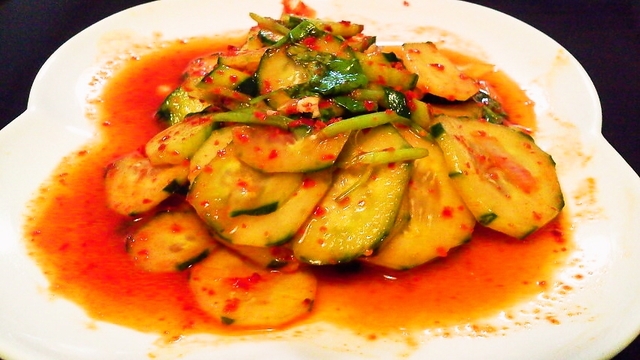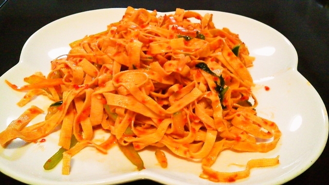 嫁が作ってくれたのは、「拌干豆腐」と「涼拌黄瓜」の2種類で