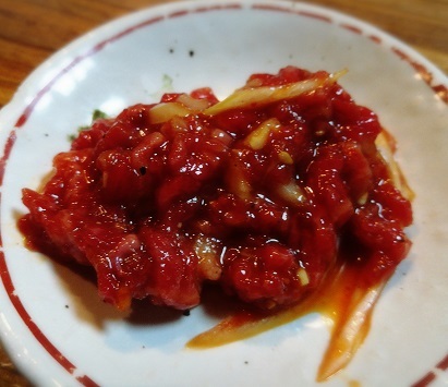 しっぽというくらいですから、後ろの方なのでしょうか、…端っこって意味かな。こちらはネギまぶしでその風味と、とろける様な柔らかさ、というものではなくある程度食感が楽しめるのです、ハラミなのに!