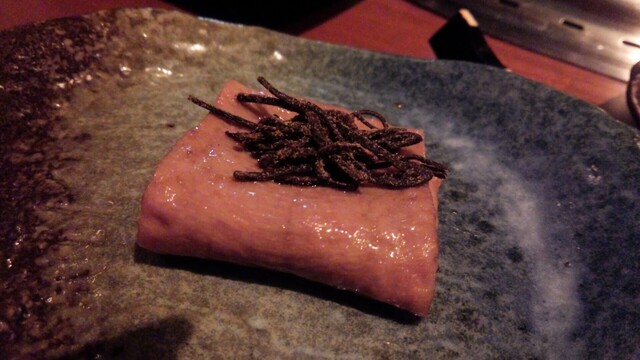 赤身はツチノコ、腰の内側で珍しい部位、一口でそのまま食べてください!と言われ柔らかい味わい
