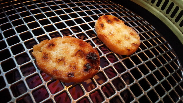 ガーリックトーストを少し炙った「ブルスケッタ」