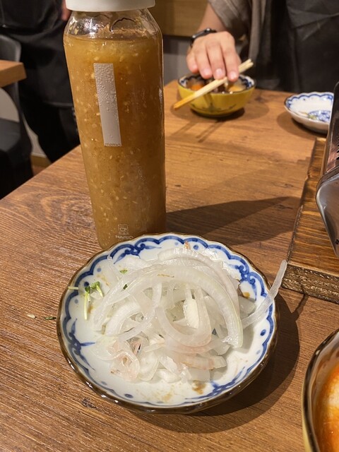 下には玉ねぎ、貝割れ大根、生姜、茗荷、ニンニクといった薬味がたっぷりあり、残った玉ねぎ用にドレッシングをくれるのもポイントだよね