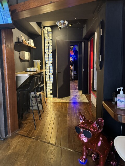 ネオンサインも輝き、いやどう見てもバーでしょって言いたくなる構え。