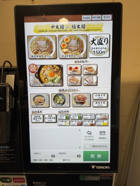 ランチに注文したのは味玉中華そば(960円)の大盛(+150円)。