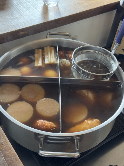 しっかりと味の染みたおでん5点盛(880円)とともに、昼から一献。