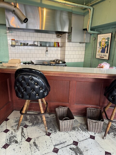 お店は厨房+カウンターの1階に加え、客席・アパレルの2階も。