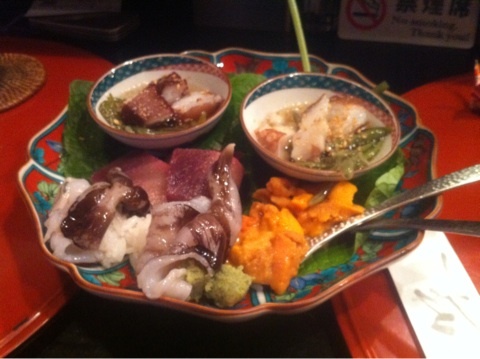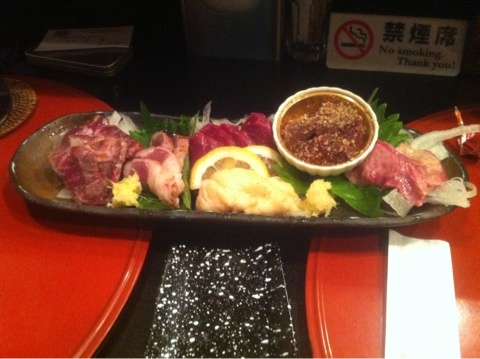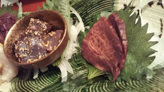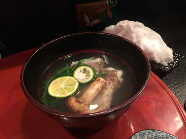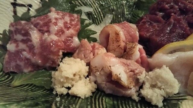 何を食べても美味しいのでお任せにして出てくるものを楽しむのもいいのですが、大切な友人を連れていくときは、友人を喜ばせたくて馬刺と潮汁を入れてもらえるように、奥さんにお願いします。