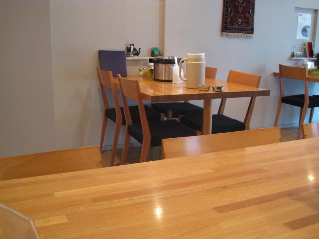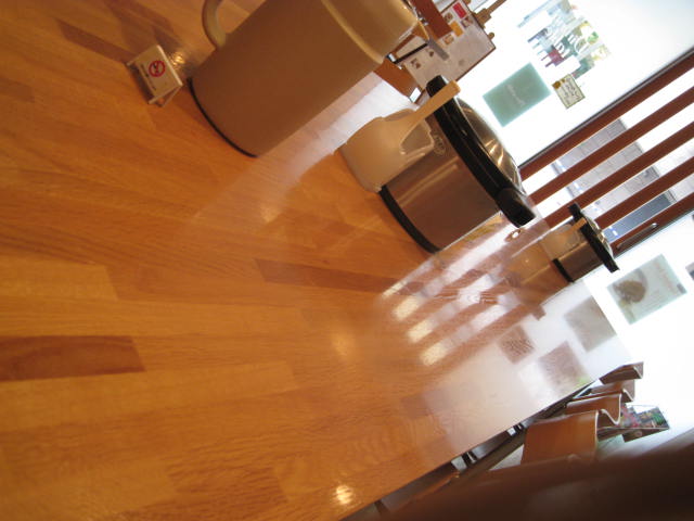 店内は明るく、入ると左側が3メートルくらいある長テーブル。