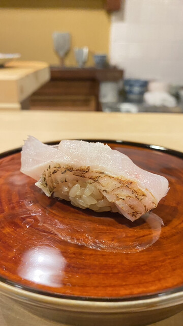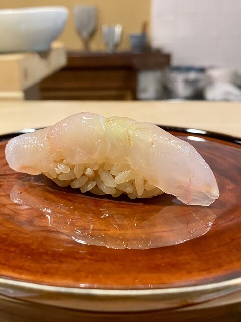 今年の夏は不漁と聞くが、白甘鯛のモチモチした食感が素晴らしい。素材の良さを実感した1貫。
