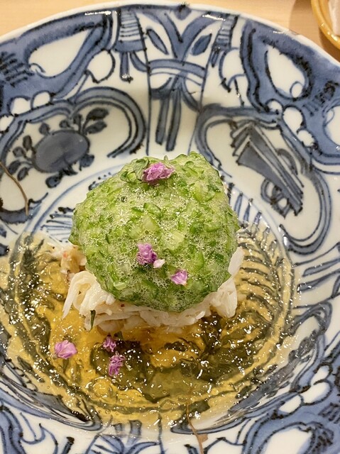 毛蟹がたっぷり解されて、夏らしくオクラの摺り流しの食感が毛蟹と絡み合う。