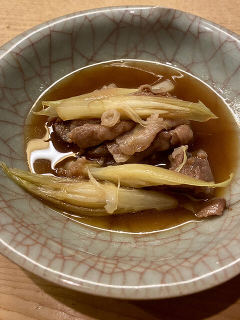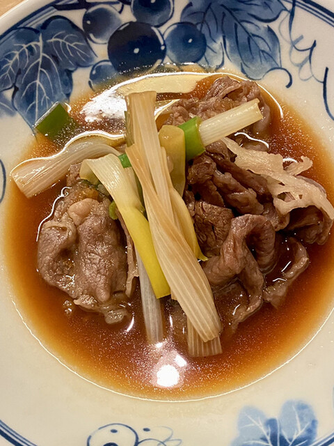 今回のメニューの中でも数少ない肉系メニュー。下仁田葱の甘味と割下の甘味が肉の旨味を増大させる。