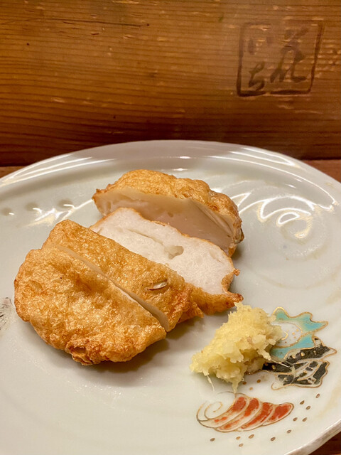 目の前ですり身から仕上げられる揚げはんぺん。ふんわりとした食感に、出汁の風味が優しく広がる。素材の良さと揚げの技が光る一品。