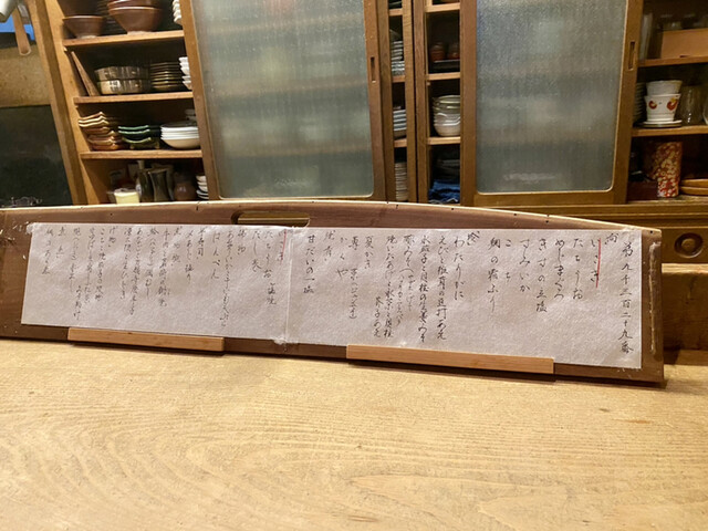 1月・2月の花いちではとらふぐの仕入れが運が良ければありつけると聞く。今回は「向」メニューの1行目にとらふぐが記載されていた。