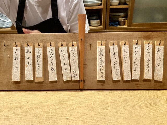 扉を開けると、木の温もりに包まれたカウンター6席だけの空間が広がる。余計な装飾は一切なく、そこにあるのは静謐で研ぎ澄まされた空気。派手さこそないが、凛とした佇まいの中に漂う独特の雰囲気。