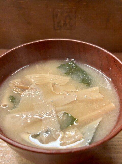 粕汁に湯葉と長芋の短冊が具材になっているのは珍しい組み合わせ。具材に粕汁が染み込み長いもはホクホク感ある食感に染み込んだ味わいがとても美味しい。