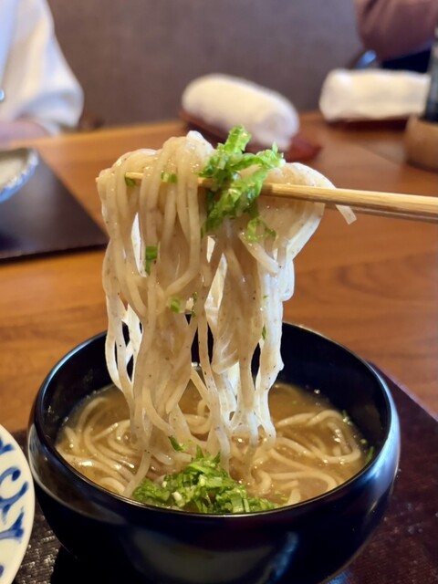 熊の旨みが染み渡るスープに、しなやかな蕎麦が絡む。シンプルながら奥行きのある味わい。