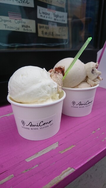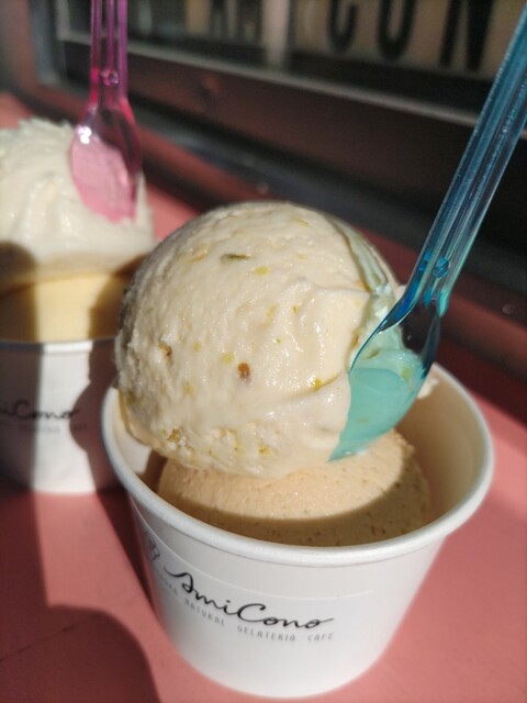 アイスの類が好きで好きで首都圏制覇を目指したこともありますが。アミコーノに出会ってからその熱が冷めましてな。もうここでいい。否ここがいい。いつでも満足をもらえる。近隣の有名店などもありますが趣味嗜好がこちらとぴたりと合うのでございますわ。少し前までソルベ系は糖類の味が前に出ていたものもあったし、今のように列ができる前はやや硬めだったときもありましたわ。だが今の『何を食べてもハイそれ正解』感は他店では得られないのでございます。季節のフレーバーはもちろんですが基本のくんねっぷミルクは裏切りません。ヴィーガンメニューもありオーガニック。最高です。